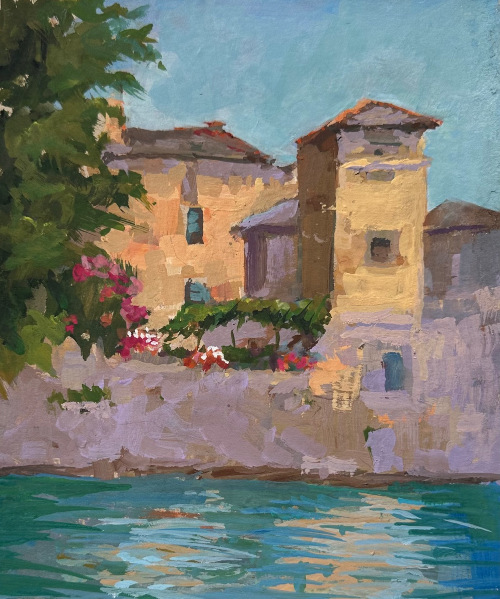 Joyful Morning, Sirmione, Gouache 8 x 10